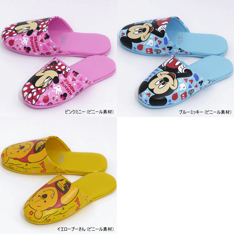 1.ピンクミニー(ビニール素材) 2. ブルーミッキー(ビニール素材) 3. イエロープーさん(ビニール素材) みんな大好きキャラクターの とってもキュートな キッズスリッパです☆